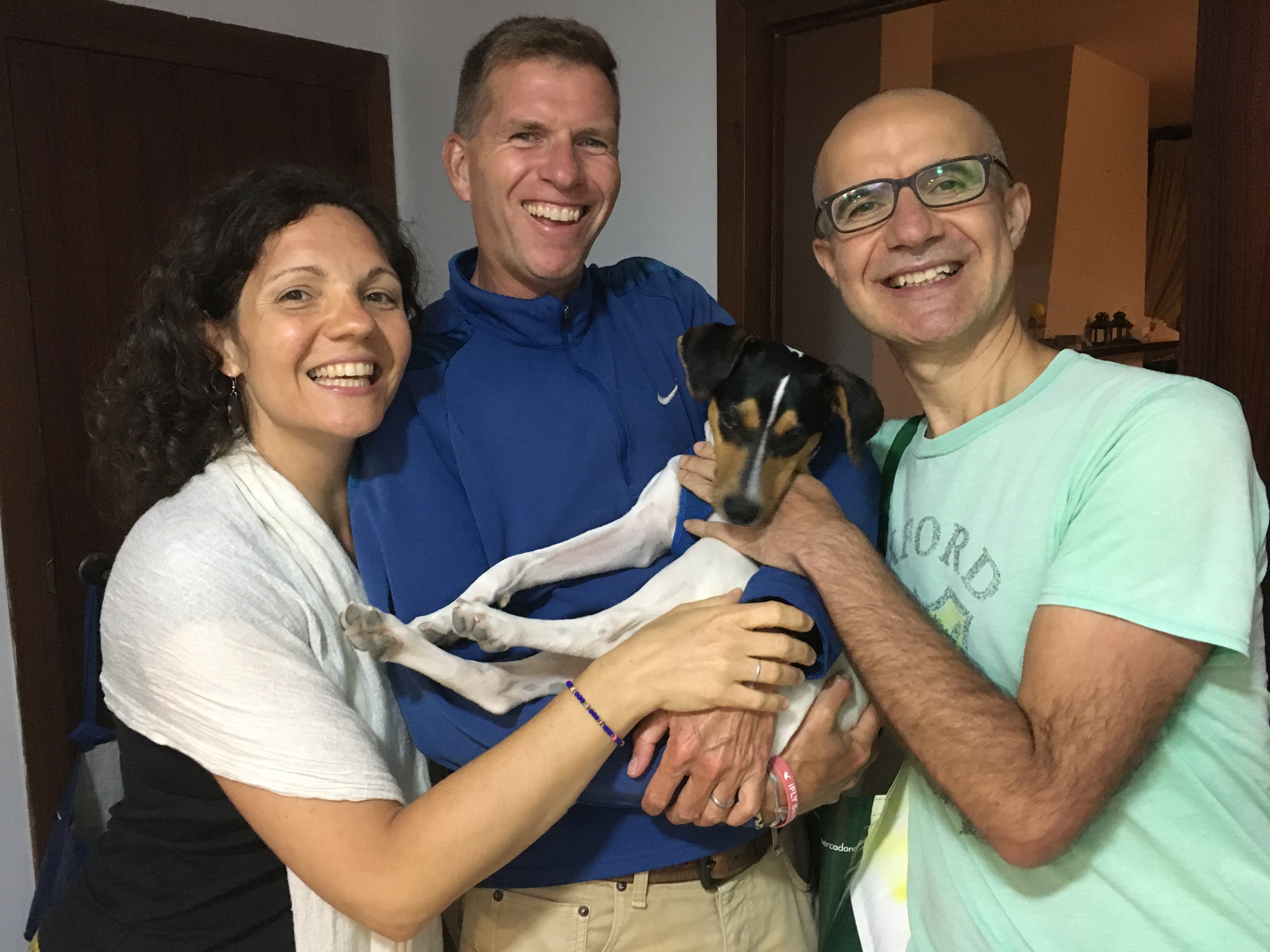 We scooped up the puppy, took him straight to our local veterinarian and found a temporary home for him since we had plans to travel right after Christmas. Turns out, he is an Andalusian Bodega Terrier (similar to a Jack Russell Terrier), bred to chase rats around wine barrels in cellars. With the help of the vet’s colleague, who cared for him while we traveled, the little guy cleaned up well, was brought back to life with some love, care and food, and we welcomed him into our family when we returned from our travels. Melegis (named after the town in which we found him, Mele for short), while having a lot of hunting instincts and puppy energy, he is also very apt to snuggle under the covers or on our laps and in fine Spanish form, he loves to sleep late and start his day much later than the average puppy. I’m afraid now that owning a small dog is now part of the list of life experiences that I swore would never happen to me along with having twins and driving a minivan.